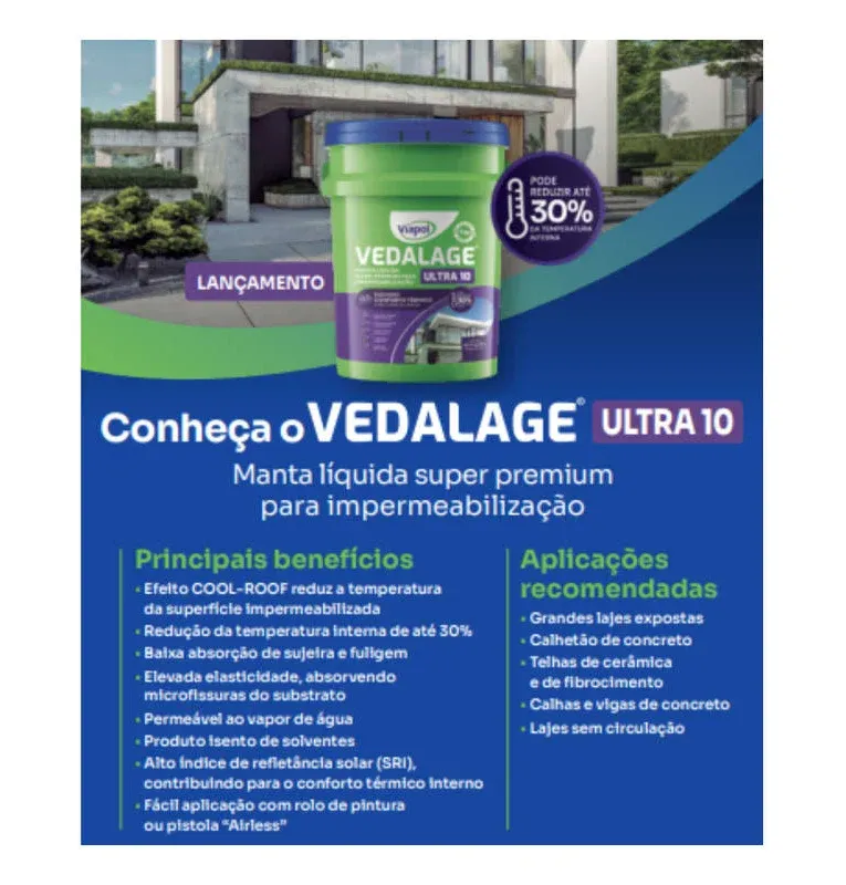 A Viapol Vedalage Ultra10 18L é ideal para quem busca impermeabilização de alto padrão com foco em