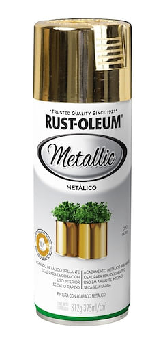 A Tinta Spray Rust-Oleum Metálico Ouro entrega um acabamento metálico brilhante